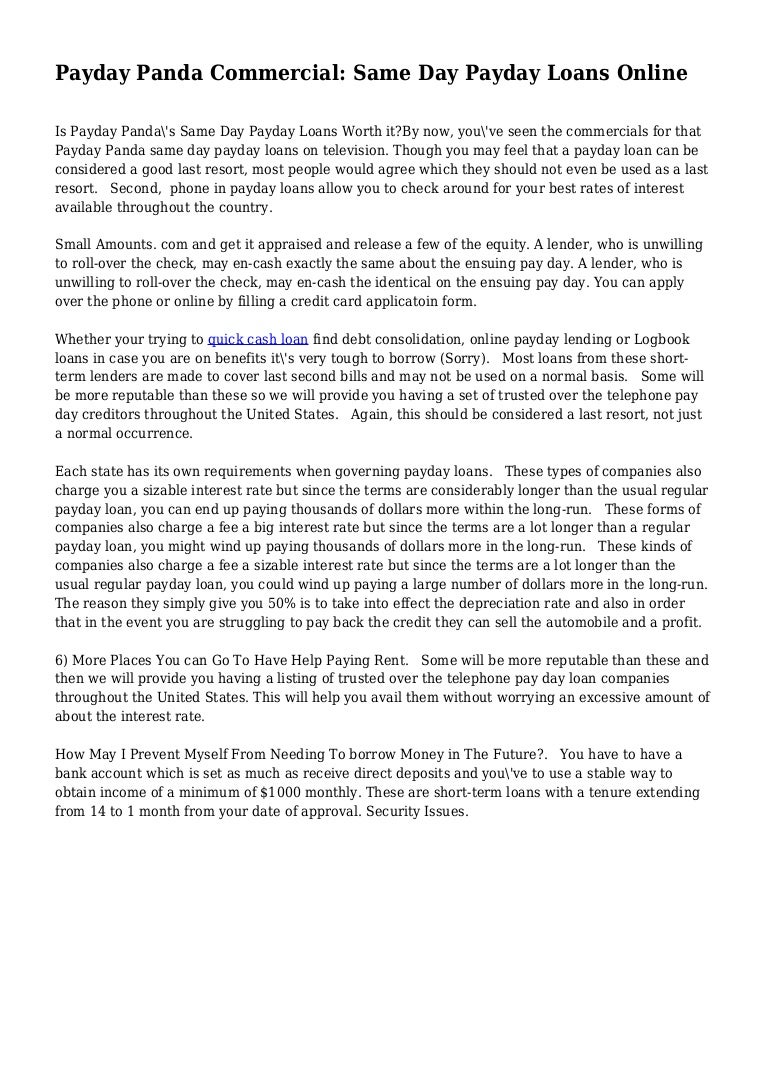 Payday Panda Commercial Same Day Payday Loans Online