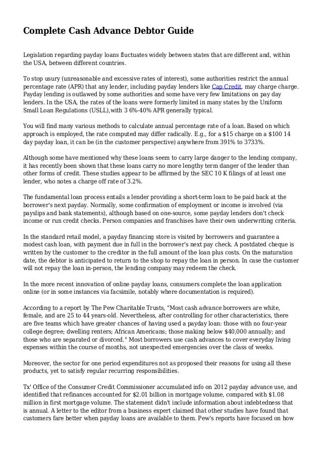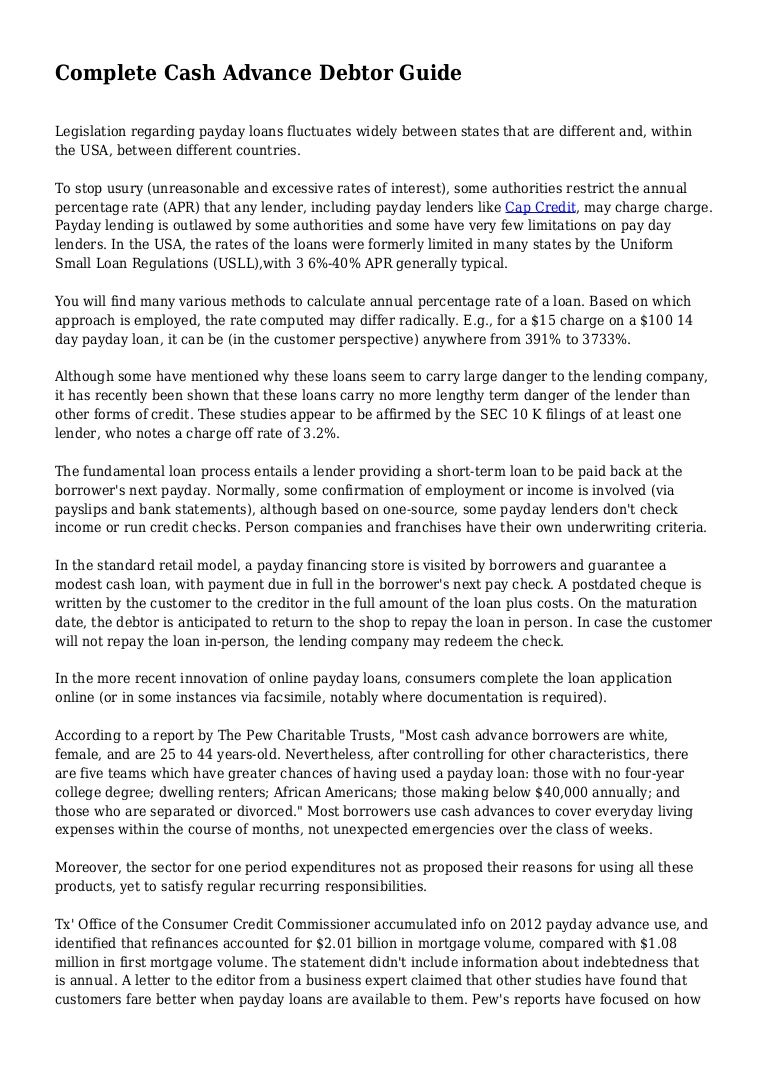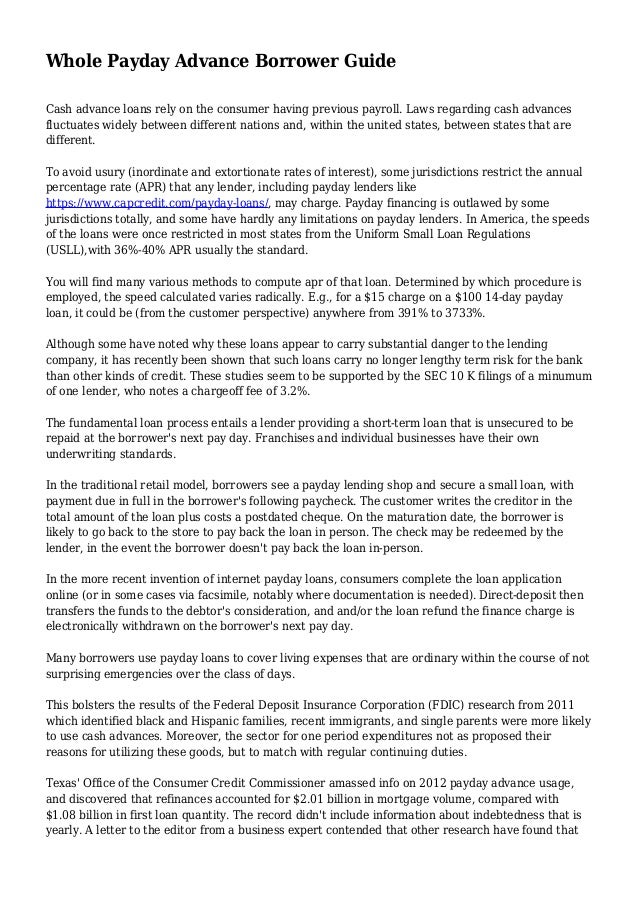 Whole Payday Advance Borrower Guide