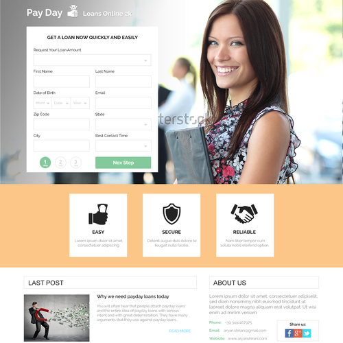 Payday Loans Template Landing Page Design Contest